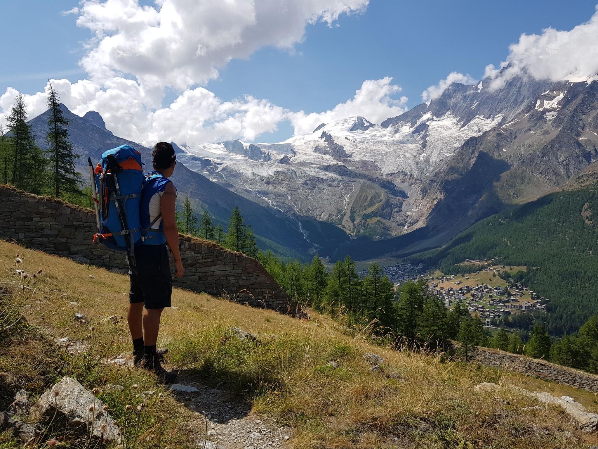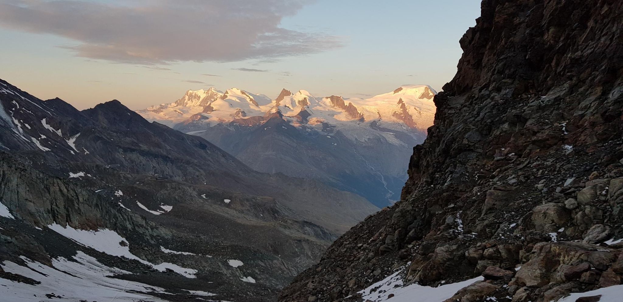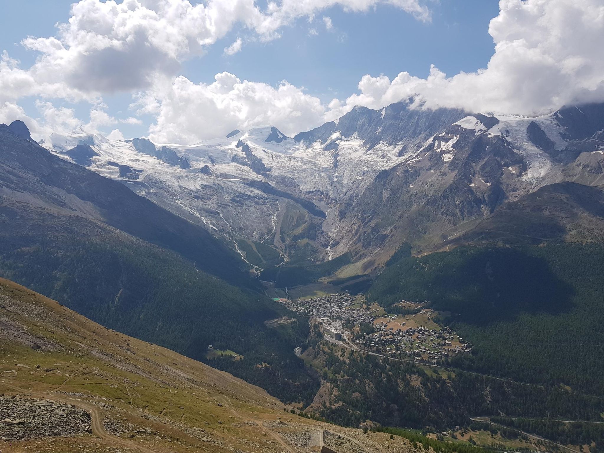 Late start around 11:30am since we only need to go to the hut. Great view ober Alphubel and surrounding peaks.